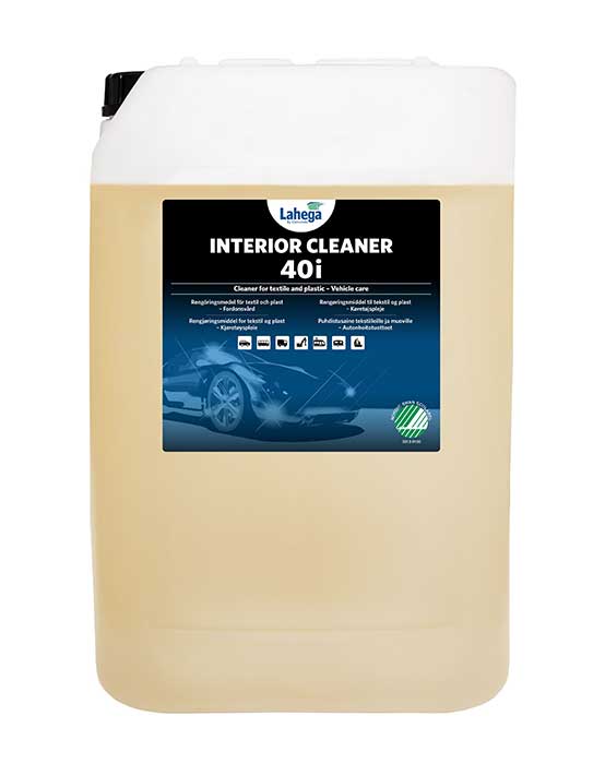 Lahega Interior Cleaner 40i är utvecklad för krävande rengöring av fordonets inredning – ett textil- och vinylrengöringsmedel med hög tvättkraft, framtaget för att ta bort ingrodd smuts, livsmedelsfläckar och liknande föroreningar från textilklädslar, vinylinredning, plastdetaljer och gummimattor.